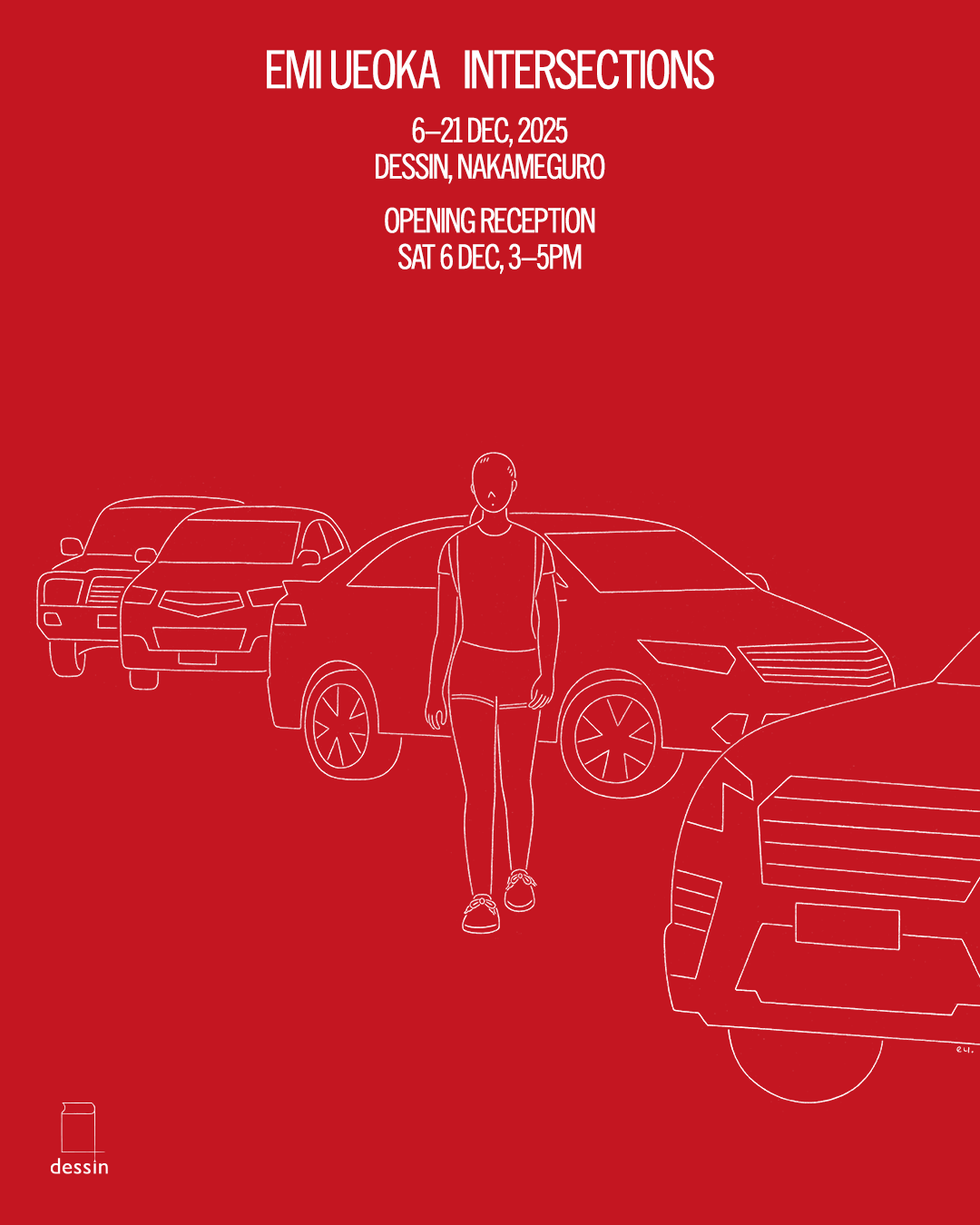 この度dessinにて、Emi Ueokaの個展「Intersections」を開催いたします。 本展では、街中のユースを描いたペンシル画の連作 をご紹介いたします。作家初の作品集刊行にあわせたオリジナルドローイングの展示となっており、112ページに及ぶ作品集は、スイスの出版社Nievesより刊行されます。 ● EMI UEOKA - INTERSECTIONS 会場:dessin | デッサン 会期:2025年12月6日(土)→ 12月21日(日) 時間:13:00 - 18:00 [火曜日定休] 入場:無料 ● EVENT 12月6日 [土] 15:00 - 17:00 オープニングレセプションを開催いたします。ご購入頂いた書籍のサイン入れはもちろんのこと、作家と直接触れ合える貴重な機会となります。是非、作家との対話をお楽しみください。 ● プロフィール: Emi Ueokaは日本出身のアーティストで、主にペンシルを用いて作品制作を行っている。学生時代を過ごしたイギリスでは、高校在学中に描いたライフドローイングがNational Portrait Galleryで展示され、その後Central Saint Martinsのグラフィックデザイン課を卒業。2011年よりイラストレーターとして活動を開始し、British Vogue、The New York Times、資生堂、Herman Millerなどの仕事を手がけている。 Instagram: @emi_ueoka https://emiueoka.com EMI UEOKA INTERSECTIONS dessin Tokyo, Japan December 6 - 21, 2025 Open: 1:00 PM - 6:00 PM Close: Tuesdays Opening Reception: Sat. 6 December, 3-5 PM Intersections is a series of pencil drawings by Emi Ueoka depicting youth waiting, commuting, and hanging out. Presented on the occasion of the artist’s book release, a large volume published by Nieves. ● Emi Ueoka is a Japanese artist working primarily in pencil. She studied in the United Kingdom, exhibiting life drawings at the National Portrait Gallery as a high-school student, and graduated in Graphic Design from Central Saint Martins, London. In 2011 she began her career as an illustrator with commissions including British Vogue, The New York Times, Shiseido and Herman Miller. Instagram: @emi_ueoka https://emiueoka.com |